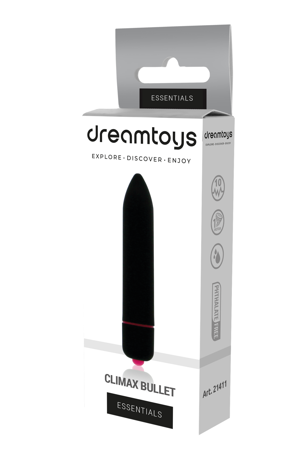 Essentials 10 greičių Climax Bullet Vibratorius – juodas, užtikrina nepakartojamą malonumą su 10 vibracijos greičiais. Pagamintas iš aukštos kokybės medicininio silikono, šis produktas yra ne tik saugus odai, bet ir švelnus lietimui, be BPA. Kompaktiškas dydis leidžia jį lengvai pasiimti į keliones, o atsparumas vandeniui ir USB įkrovimas suteikia papildomą patogumą. Tylus veikimas užtikrina diskreciją, leidžiančią mėgautis intymiais momentais be rūpesčių.