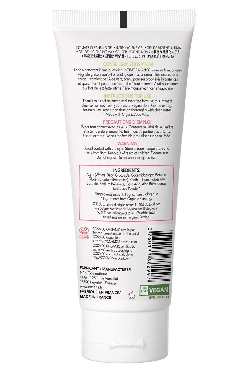 Užtikrinkite optimalią intymią sveikatą naudodami Exsens Cleaning Gel Intime Balance 100 ml. Šis prausiklis be muilo praturtintas 97% natūralių ingredientų, įskaitant ekologišką alaviją, kad ramintų ir drėkintų, išlaikant natūralią jūsų kūno pusiausvyrą. Jo veganiška, ekologiška formulė yra sertifikuota „Cosmos Organic“ ir sukurta taip, kad būtų švelni jautrioms vietoms ir apsaugotų nuo dirginimo dėl fiziologinio pH. Idealiai tinka kasdieniam naudojimui, šis gelis suteikia gaivų švaros pojūtį, puikiai tinka tiek namuose, tiek kelionėse. Palaikykite savo intymias vietas sveikas ir gaivias su Exsens.