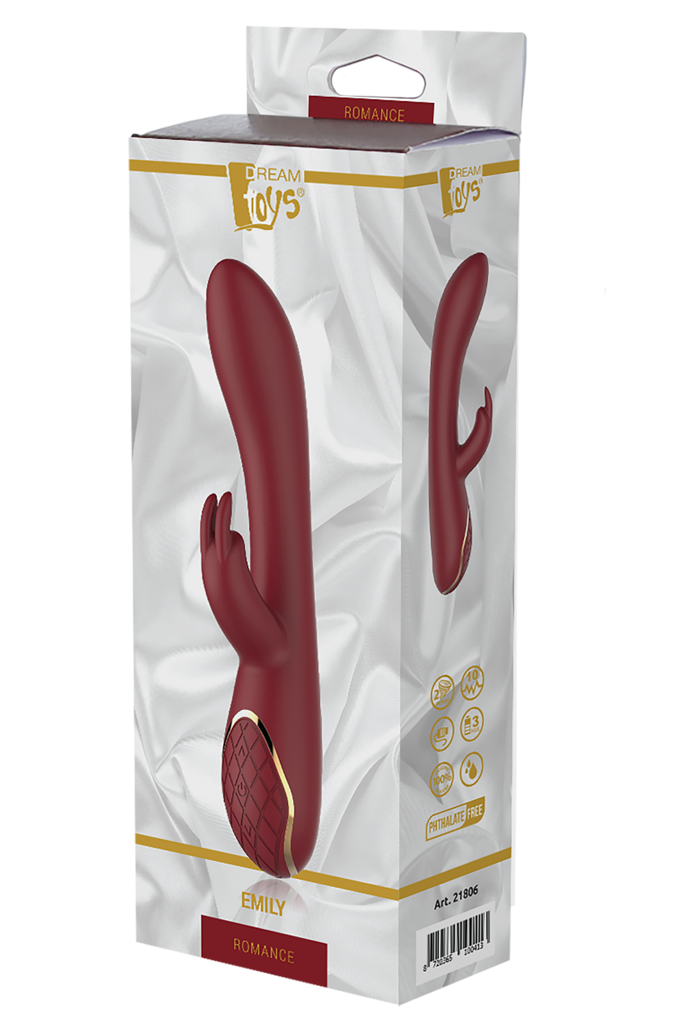 Patirkite nepakartojamą malonumą su Emily Duo Vibratoriumi iš Dream Toys. Šis du galingus variklius turintis vibratorius yra pagamintas iš aukštos kokybės medžiagos ir pasižymi septyniomis vibracijos programomis bei trimis greičio lygiais. Įmontuotas klitorio stimuliatorius užtikrina intensyvų išorinį stimuliaciją. Vandeniui atsparus dizainas ir įkraunama baterija suteikia papildomą patogumą bei saugumą. Stilingas bordo raudonos spalvos dizainas su aukso detalėmis papildo estetinį malonumą.
